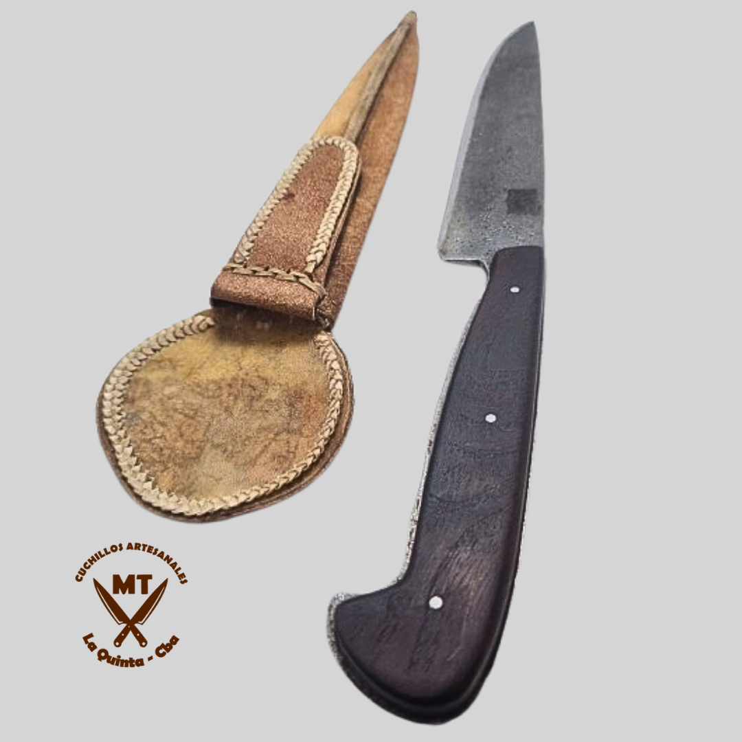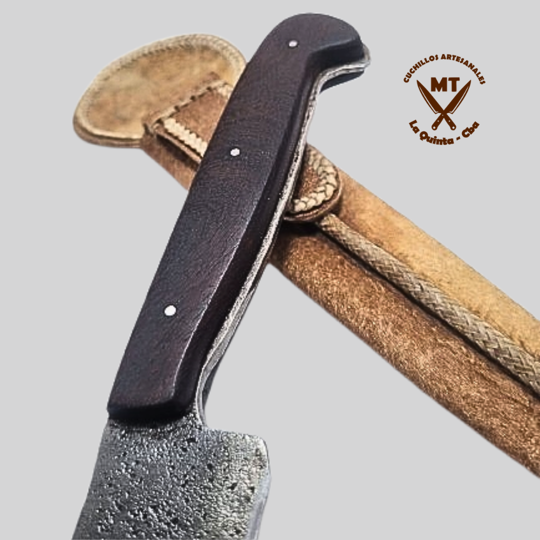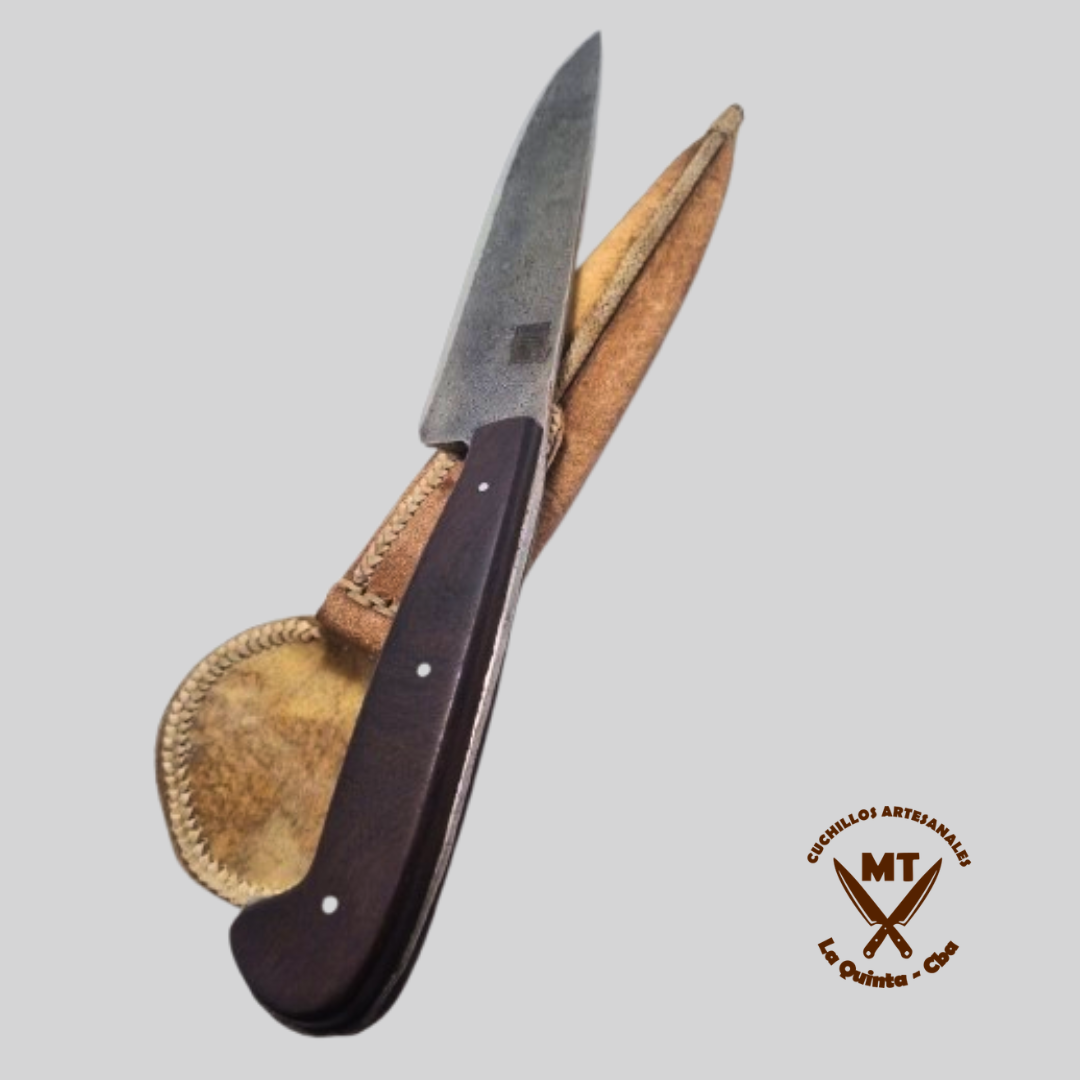 Este cuchillo fue forjado por Mayco Teves, creador de MT Cuchillos, cuchillero de la localidad de La Quinta, departamento Río Primero, Córdoba, Argentina. Autodidacta y formado en distintos oficios manuales, integra acero, madera y cuero para producir piezas donde cada material responde a una función concreta dentro de la herramienta.